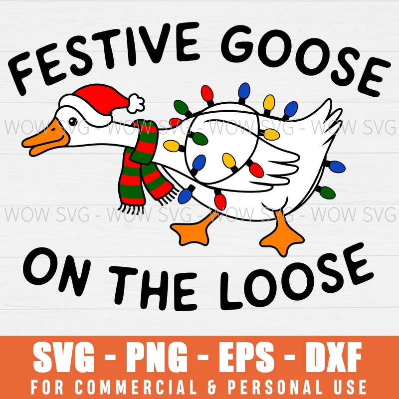 CHRISTMAS FESTIVE GOOSE ON THE LOOSE SVG PNG EPS DXF, CRICUT FILES, SVG FILES CLIP ART
