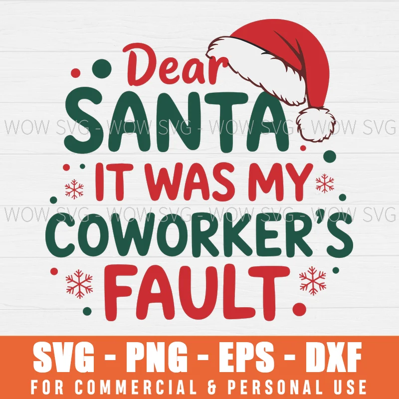DEAR SANTA ITS MY COWORKERS FAULT PNG SVG FUNNY SAYING CHRISTMAS SVG PNG EPS SVG PNG EPS DXF, CRICUT FILES, SVG FILES CLIP ART