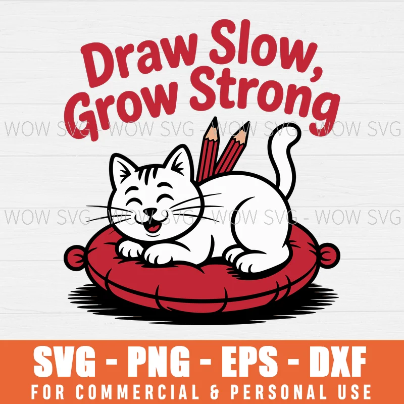 This SVG file works with Cricut, Silhouette, and similar cutting machines for artist humor projects. Use it to create custom t-shirts and apparel for artists, along with mugs and tumblers for art spaces. The file works well for stickers and decals that personalize art supplies. Wall art adds motivation to art spaces, while gift tags work well for artist appreciation. This humorous design celebrates artistic growth and makes thoughtful presents for artists and cat lovers.