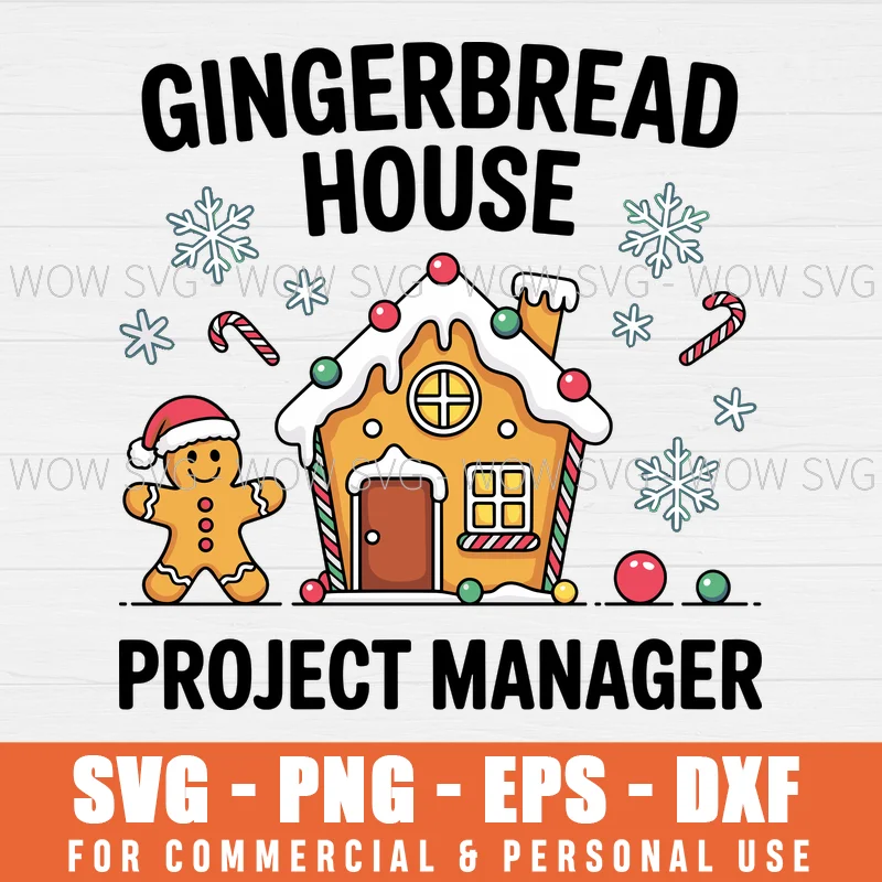 GINGERBREAD HOUSE PROJECT MANAGER FUNNY CHRISTMAS SVG PNG EPS DXF, CRICUT FILES, SVG FILES CLIP ART