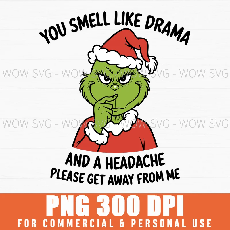 Funny Grinch Christmas Sublimation PNG 300dpi Smell Like Headache Get Away Grinch Santa Quote