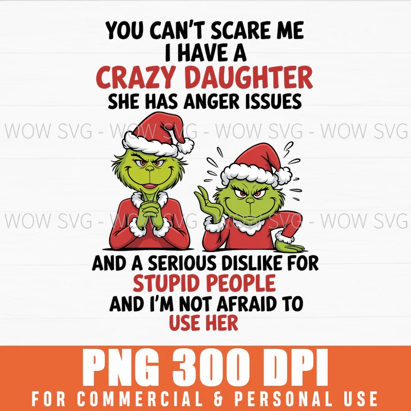 Funny Grinch Christmas Sublimation PNG 300dpi You Cant Scare Me Crazy Daughter Anger Issues Parent Humor
