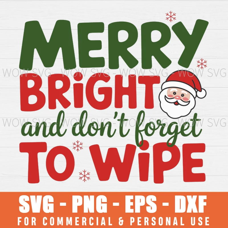 MERRY BRIGHT AND DON'T FORGET TO WIPE FUNNY CHRISTMAS SVG PNG EPS DXF, CRICUT FILES, SVG FILES CLIP ART