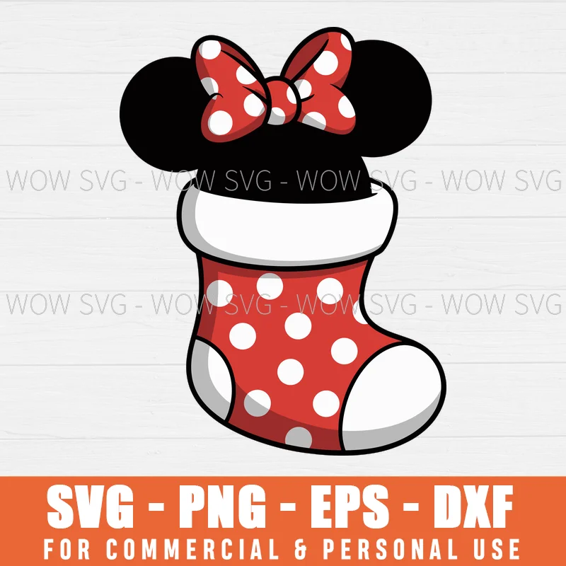 MINNIE SANTA SOCK CHRISTMAS SVG PNG EPS DXF, CRICUT FILES, SVG FILES CLIP ART