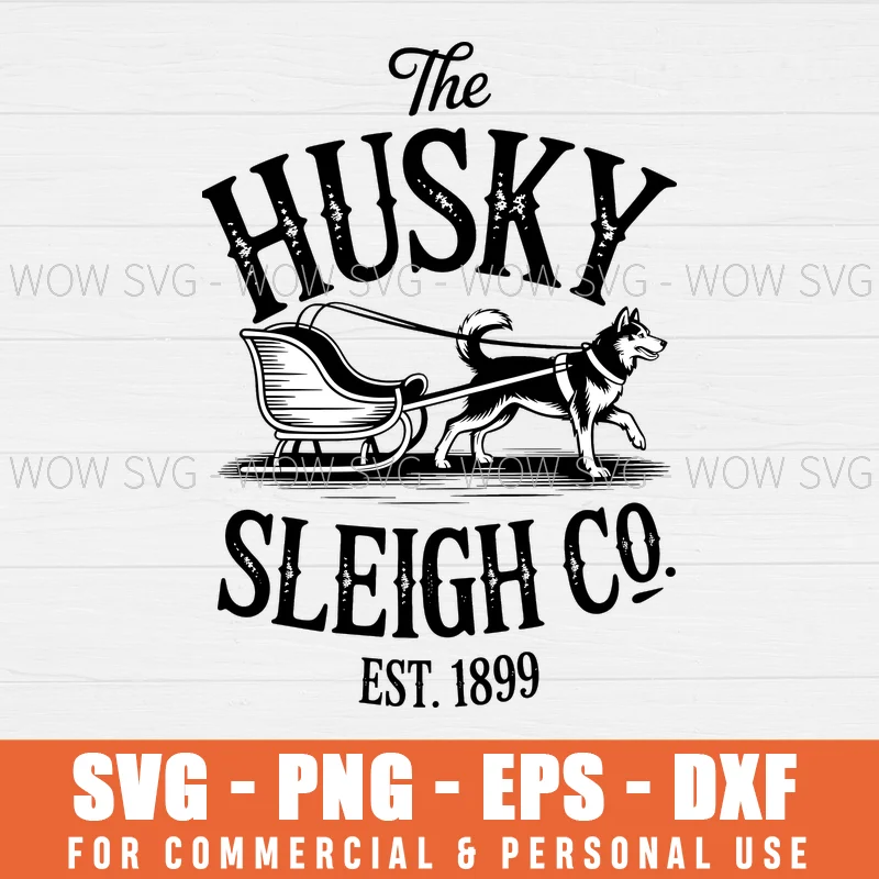 RETRO HUSKY SLEIGH CO VINTAGE DOG CHRISTMAS SVG PNG EPS DXF, CRICUT FILES, SVG FILES CLIP ART