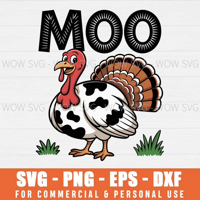 THANKSGIVING FUNNY TURKEY COW MOO SVG PNG EPS DXF, CRICUT FILES, SVG FILES CLIP ART