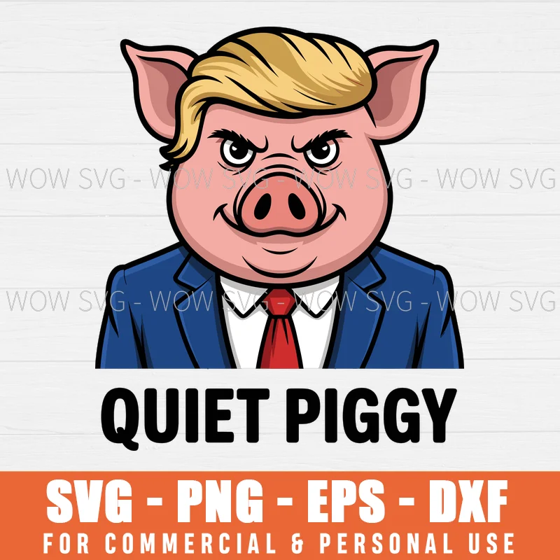 This SVG file works perfectly with Cricut, Silhouette, Brother ScanNCut, and other cutting machines for creating custom political meme designs. Use this Trump Quiet Piggy Meme SVG to make personalized t-shirts and tank tops that showcase your sense of humor, along with mugs and tumblers that serve as conversation starters. The design also works excellently for stickers and decals that you can apply to laptops, water bottles, and car windows. Create custom party decorations, banners, and home decor items that add a playful political touch to your space. The file is ideal for gift bags, favor tags, and other party supplies for political gatherings or humorous events. This versatile design helps you create memorable items that celebrate political humor and meme culture with high-quality, scalable graphics that work across various projects and materials.